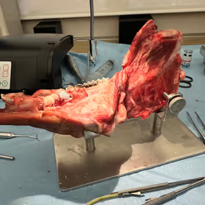 Set in the state-of-the-art facilities of Bethanien Hospital in Frankfurt am Main, overlooking the rooftops of Bornheim, this experience goes far beyond traditional lectures. You will follow live surgeries directly from the operating theatre below the multimedia training room via HD cameras from multiple angles, and then put your newly acquired knowledge into practice during intensive, closely supervised hands-on sessions using pig jaws. You will work exclusively with premium products from leading manufacturers, including titanium-reinforced PTFE membranes, as well as high-end instruments and osteosynthesis materials.